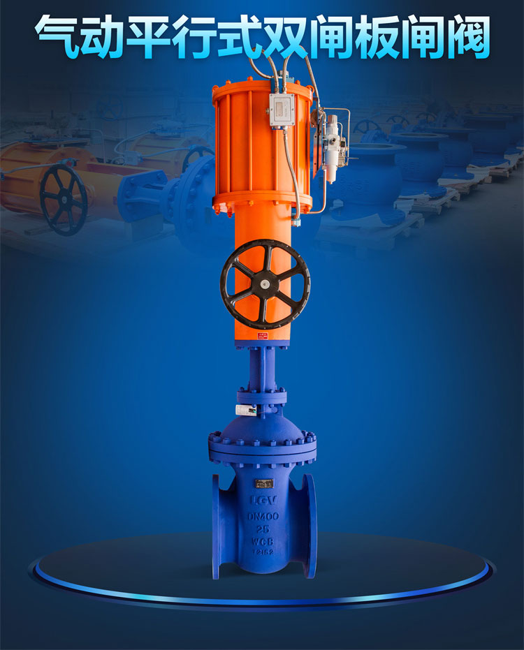 11. 單作用彈簧復位氣動平行式雙閘板閘閥,在斷電或停氣時,可利用氣缸的內儲能彈簧的作用使閥門緊急復位,使閥門關閉或開啟起到安全作用。