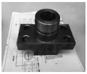 通過在失效的球閥注脂嘴四周表面固定T101b帶壓更換成套工具,實現注脂嘴的帶壓拆卸和更換工作。為保證施工過程中的密封效果,需提前加工護板短節和抱箍,并準備高壓O型密封圈,還需加工護板短節和抱箍結構(如下頁圖10、11)。護板短接及底部的O型圈、球閥表面和2英寸閥門在抱箍的作用下,使注脂嘴四周形成一個密封腔 。帶壓更換成套工具裝配后如圖12所示。